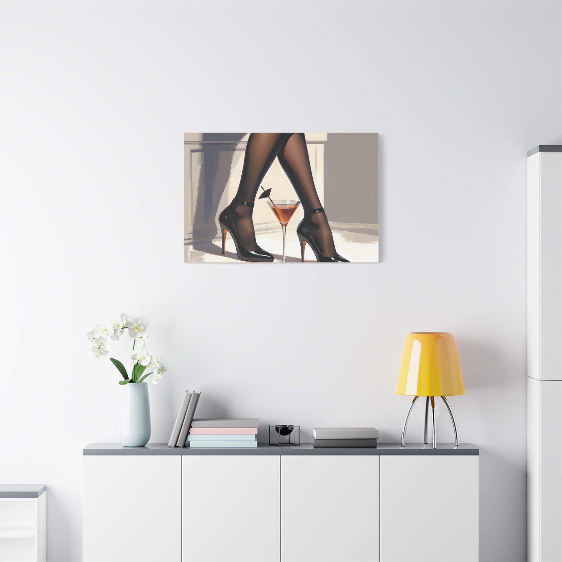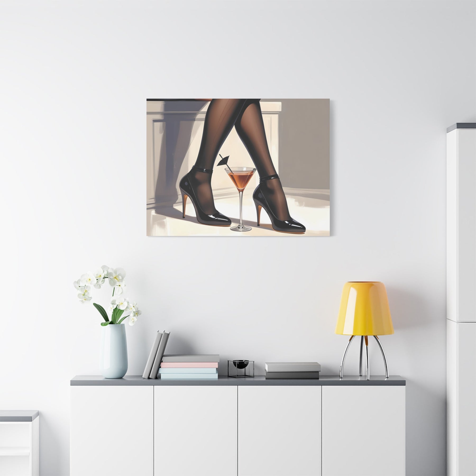 Elevate your home, lounge, or bar décor with this Sexy Stockings Wall Art. Featuring elegant legs and heels in a chic cocktail-inspired design, this instant canvas print brings a touch of glamour and feminine sophistication to any space. Perfect for boudoir décor, home bars, or modern lounges, this artwork makes a bold statement while maintaining style and elegance.