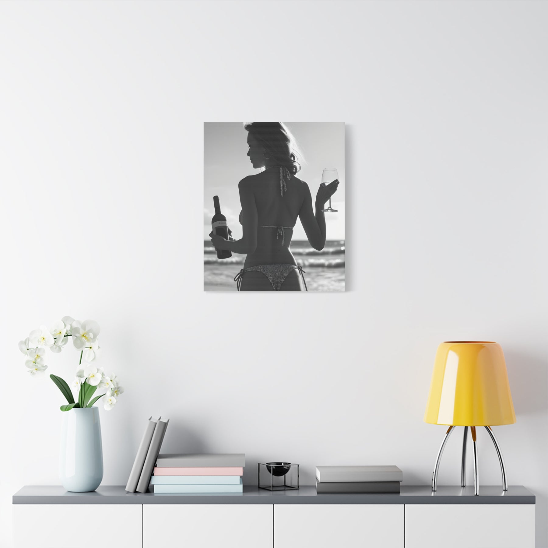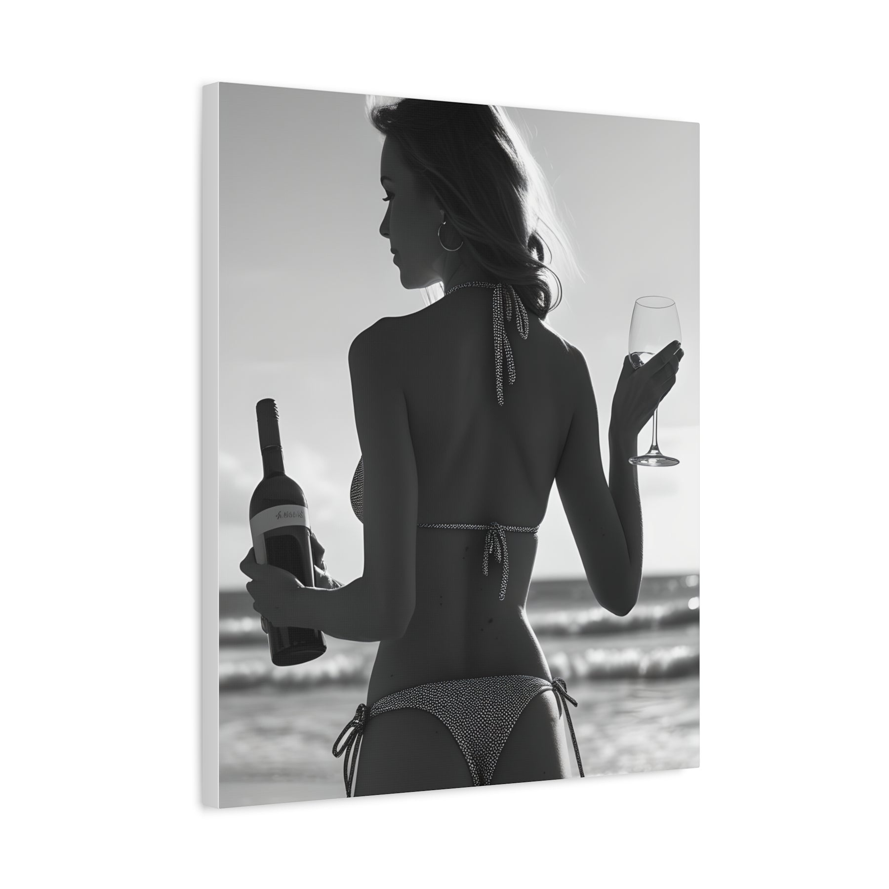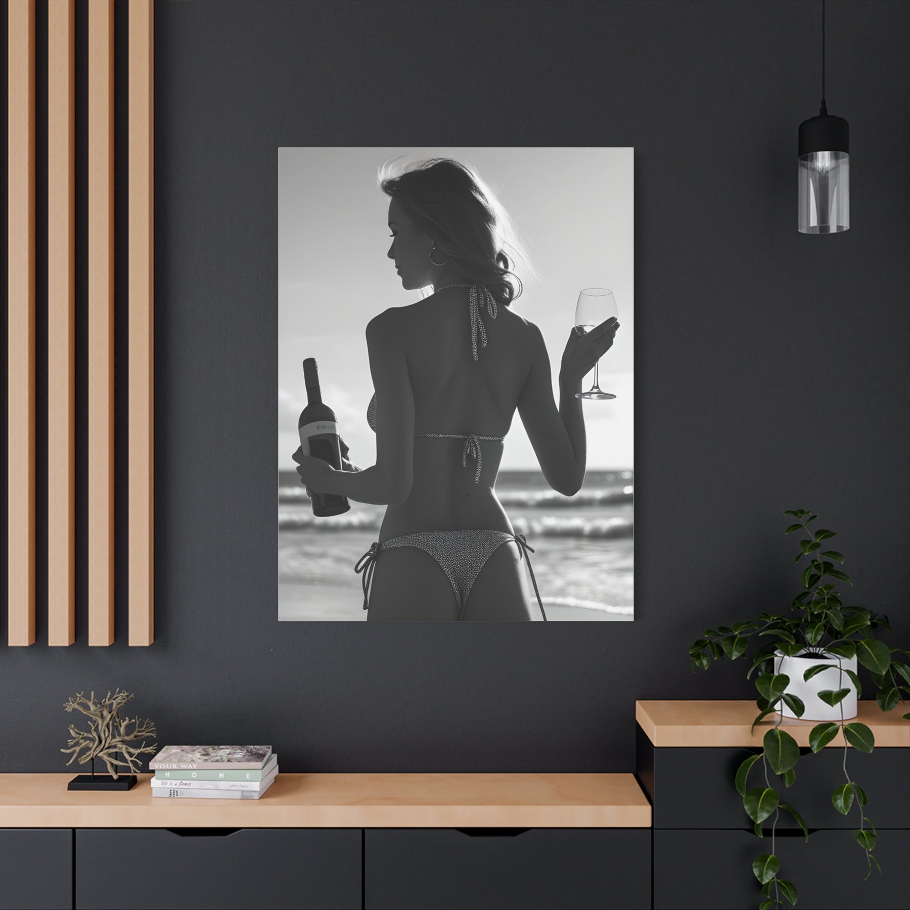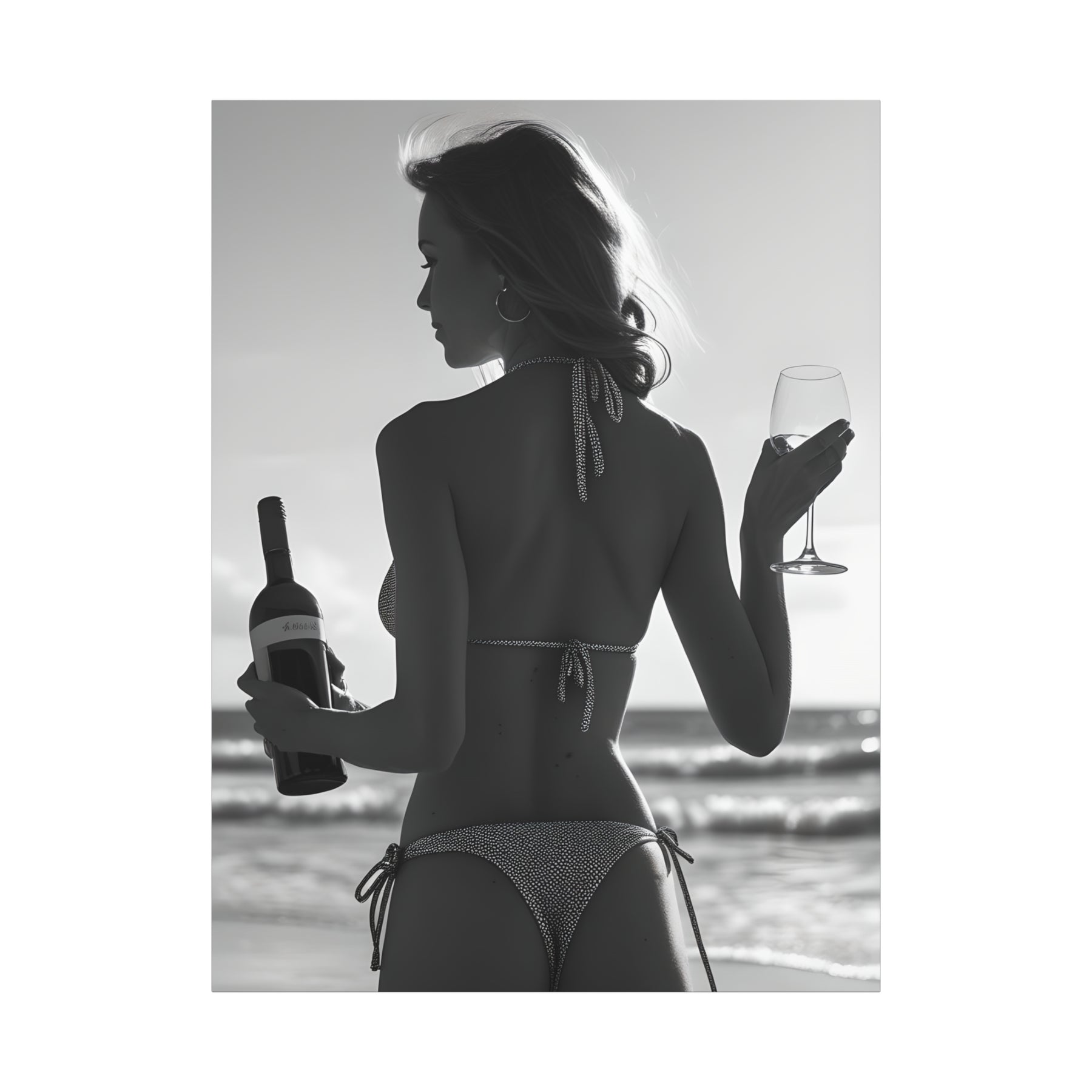 Bring a touch of modern coastal elegance to your home with this Bikini Beach Wall Art. Featuring a sexy woman holding a wine glass in striking black and white photography, this print captures the relaxed sophistication of beach life. Perfect for bedrooms, living rooms, or beach-themed spaces, it adds a contemporary and stylish flair to any room.
