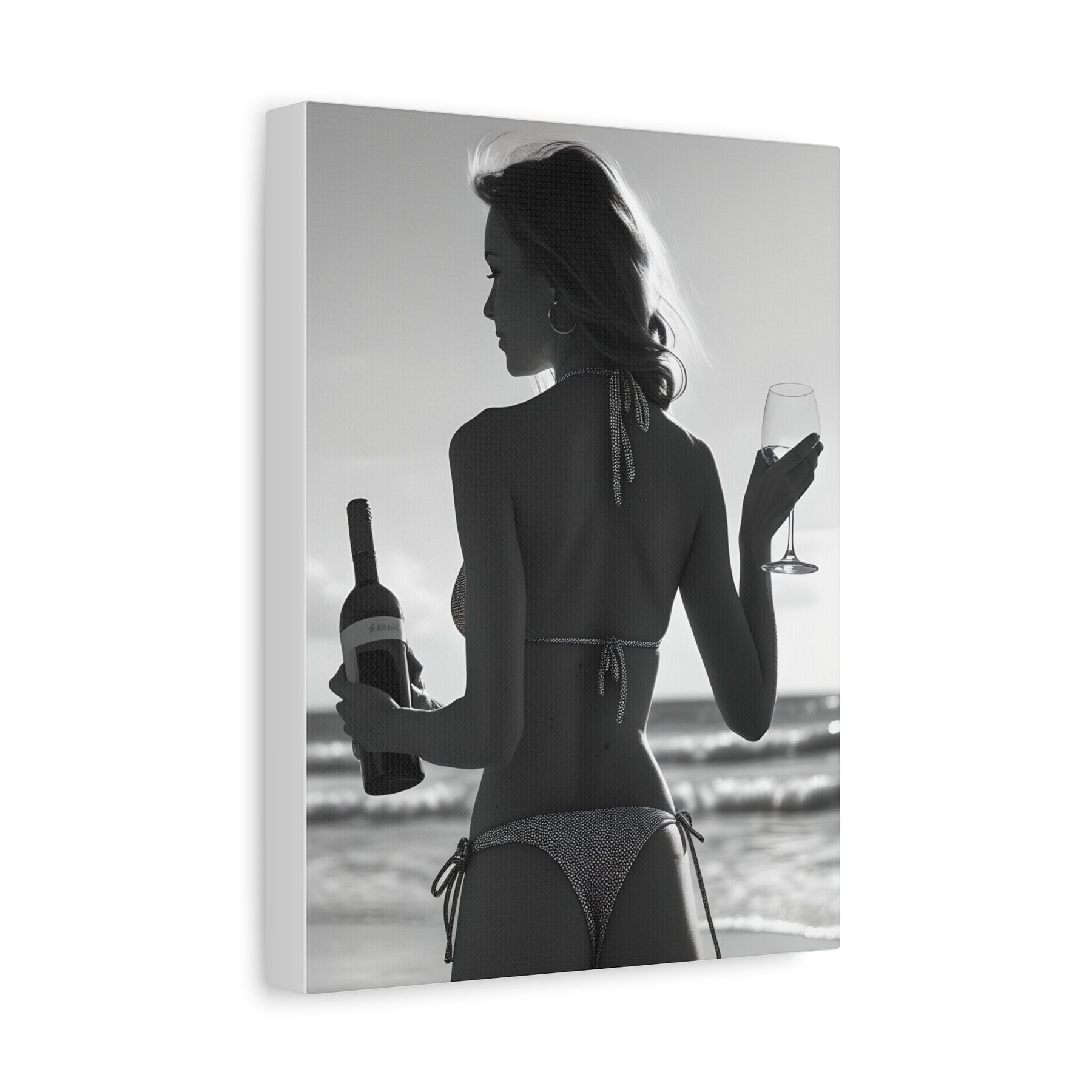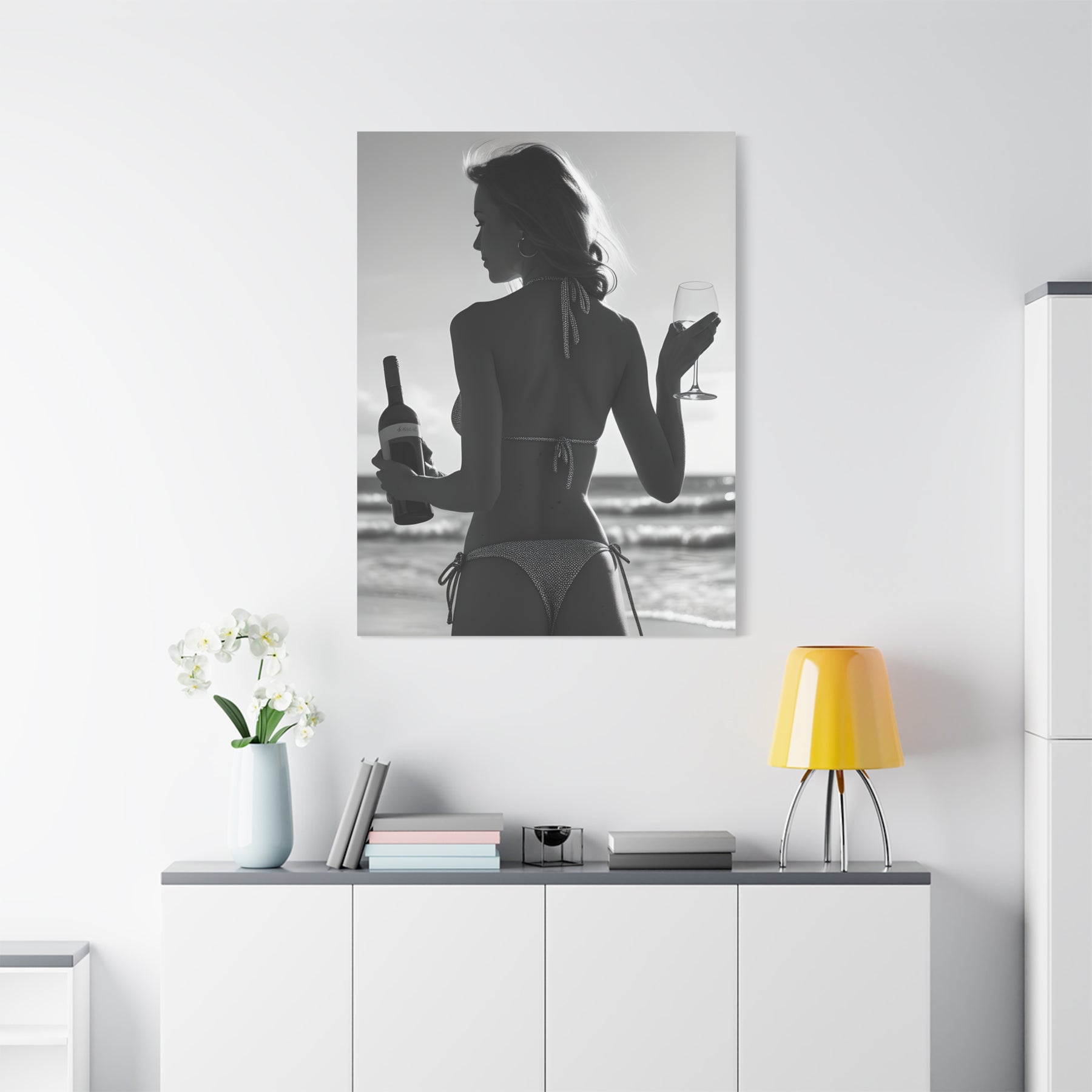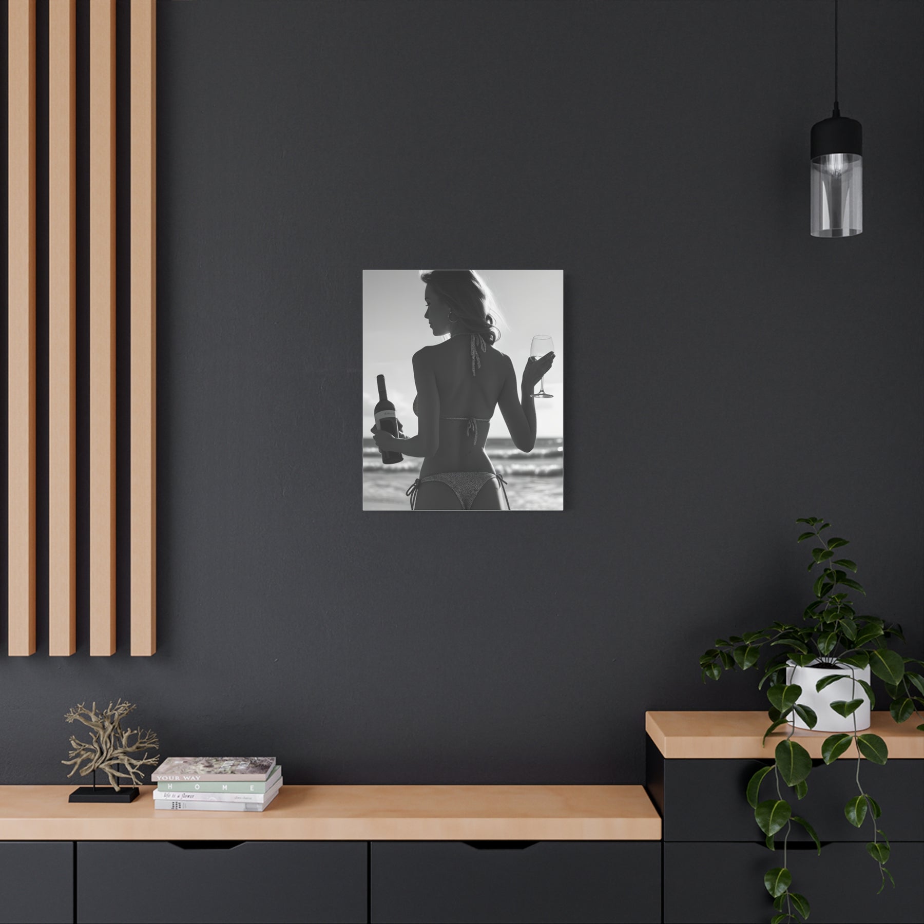 Bring a touch of modern coastal elegance to your home with this Bikini Beach Wall Art. Featuring a sexy woman holding a wine glass in striking black and white photography, this print captures the relaxed sophistication of beach life. Perfect for bedrooms, living rooms, or beach-themed spaces, it adds a contemporary and stylish flair to any room.