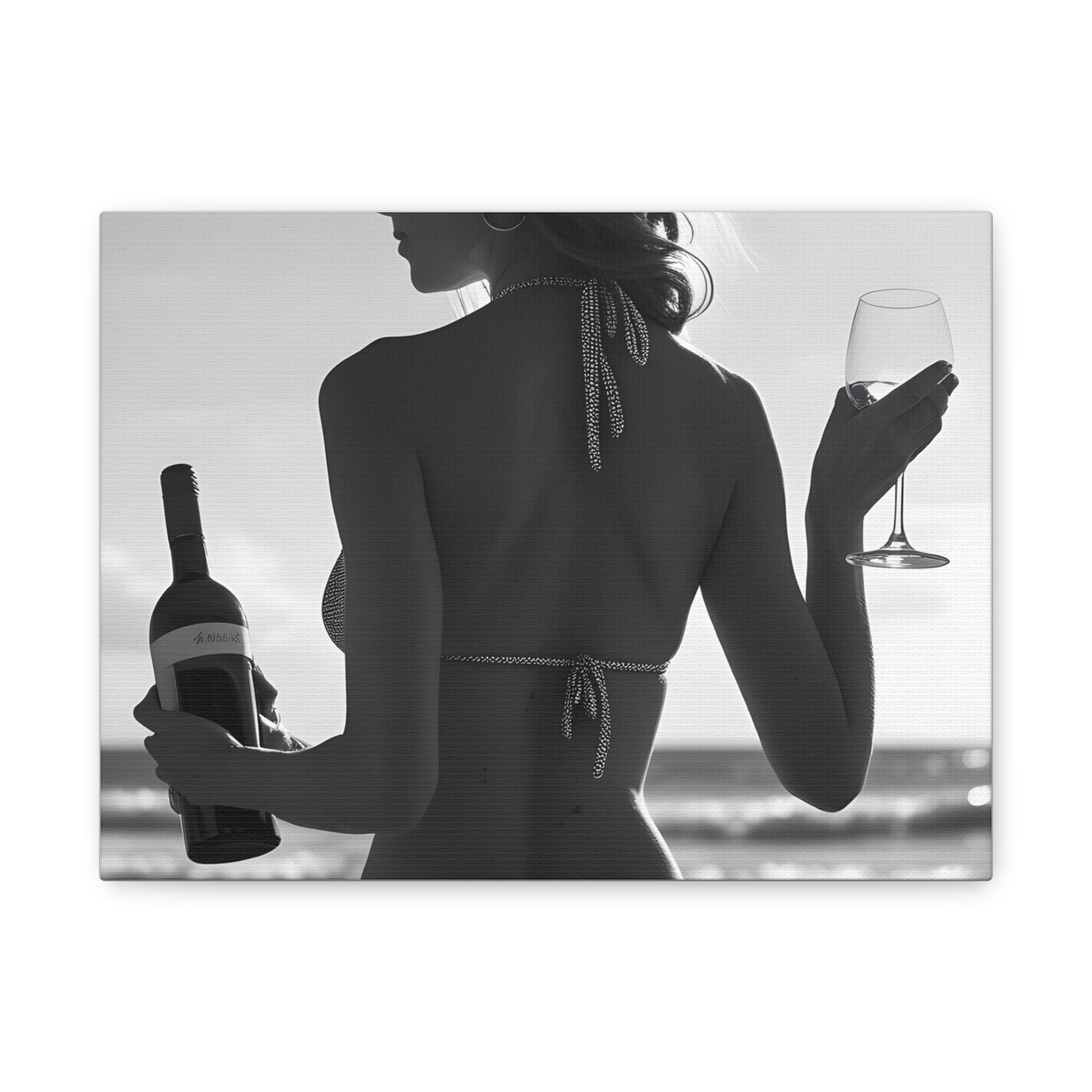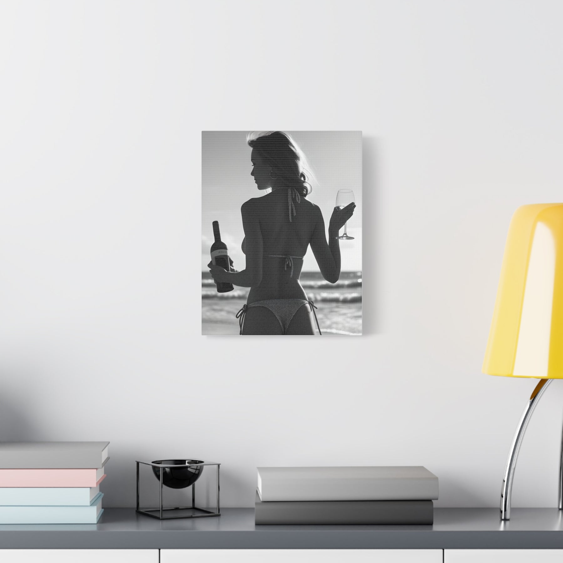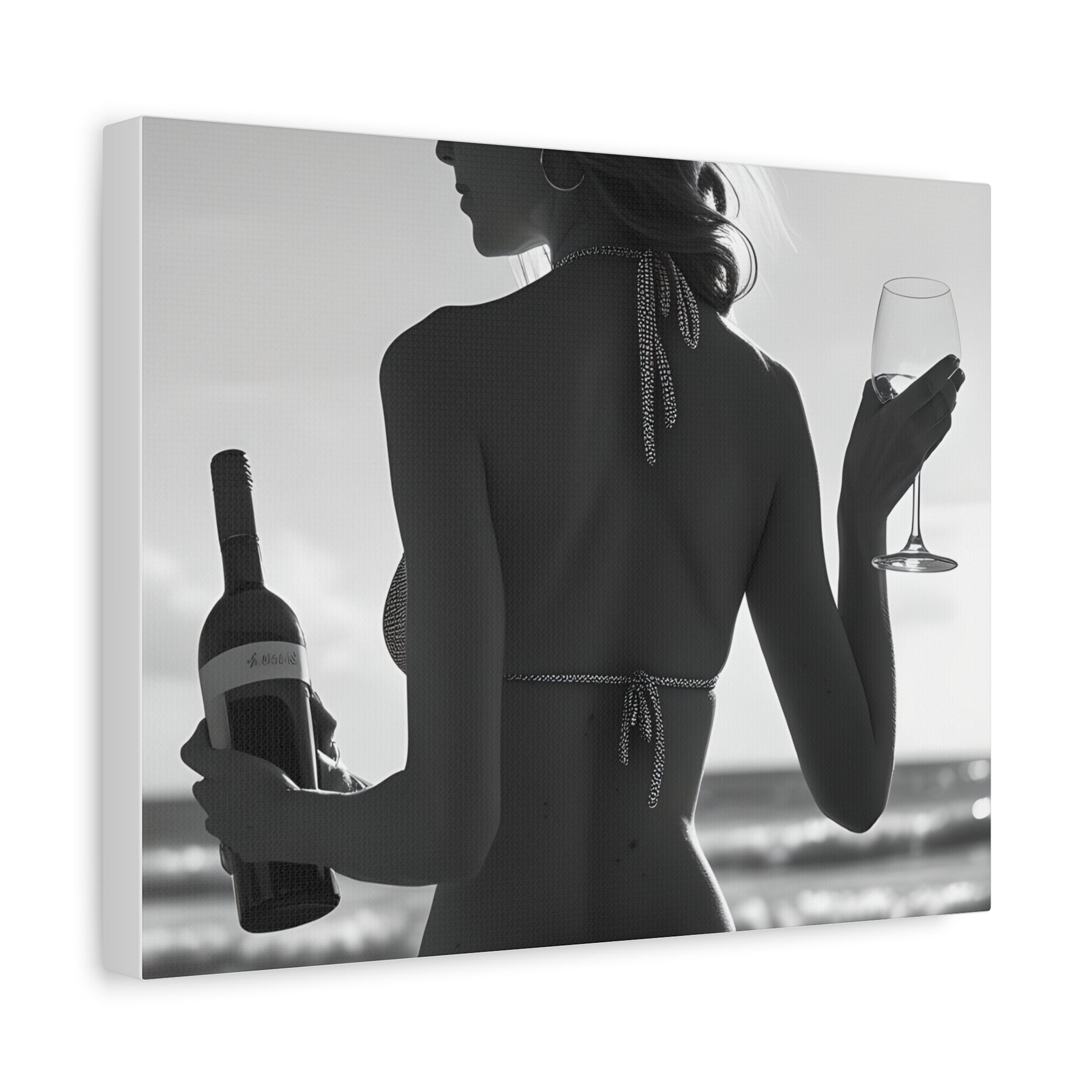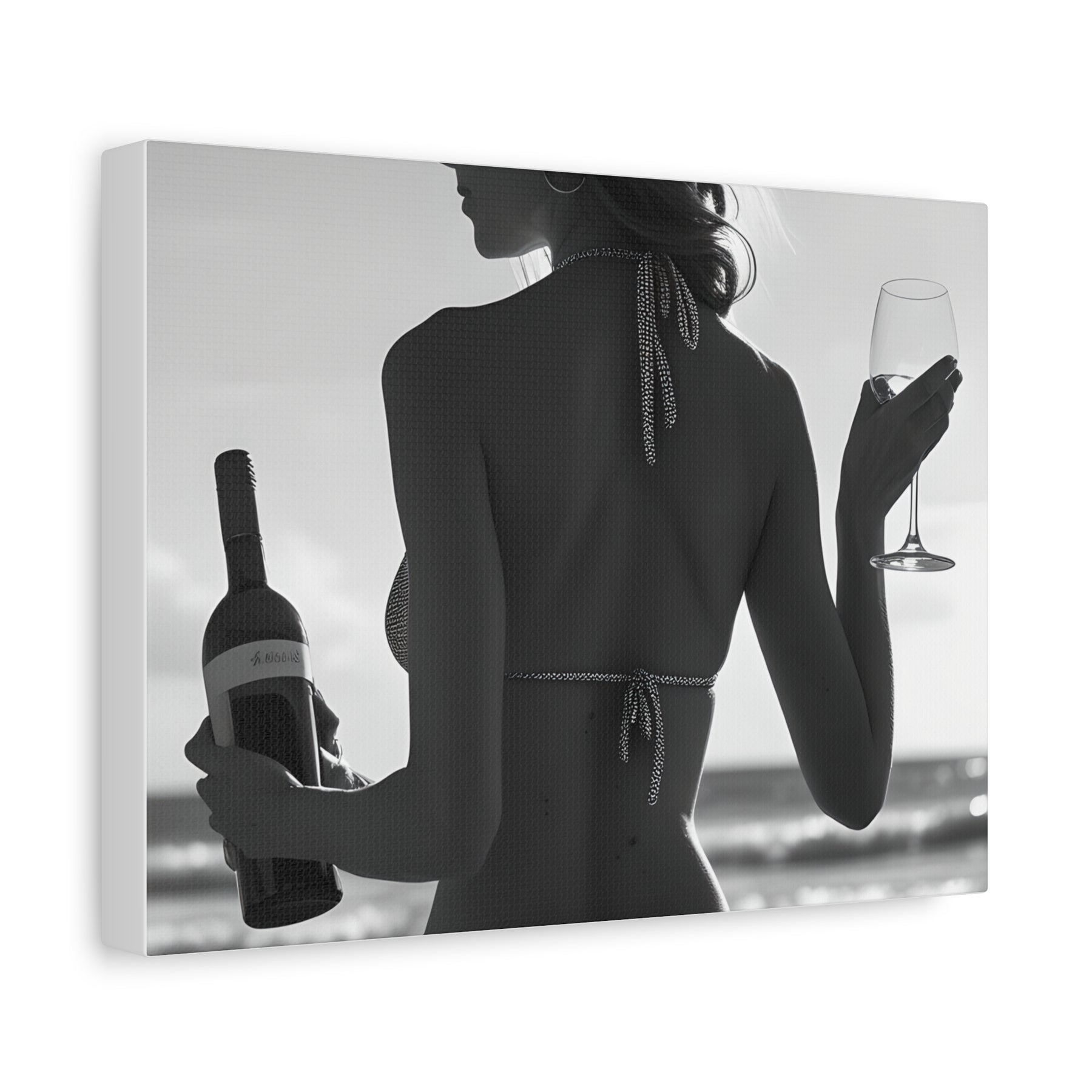 Bring a touch of modern coastal elegance to your home with this Bikini Beach Wall Art. Featuring a sexy woman holding a wine glass in striking black and white photography, this print captures the relaxed sophistication of beach life. Perfect for bedrooms, living rooms, or beach-themed spaces, it adds a contemporary and stylish flair to any room.