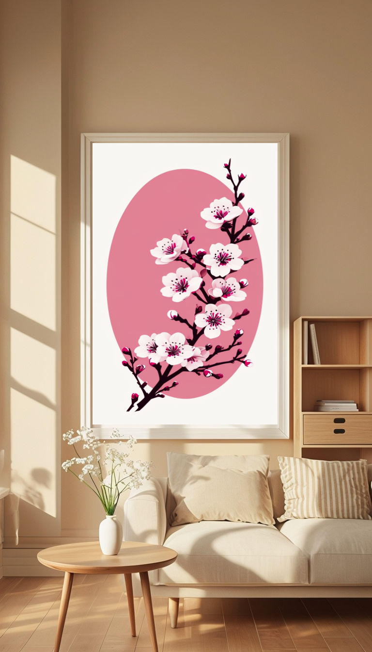 Printed on high-quality canvas with vibrant colors and fine detail, this cherry blossom wall decor adds a peaceful, artistic touch to modern, Japandi, or minimalist interiors. It's available in multiple sizes and arrives ready to hang, making it an effortless upgrade for your space or a thoughtful gift for someone who loves floral and Japanese-inspired art.