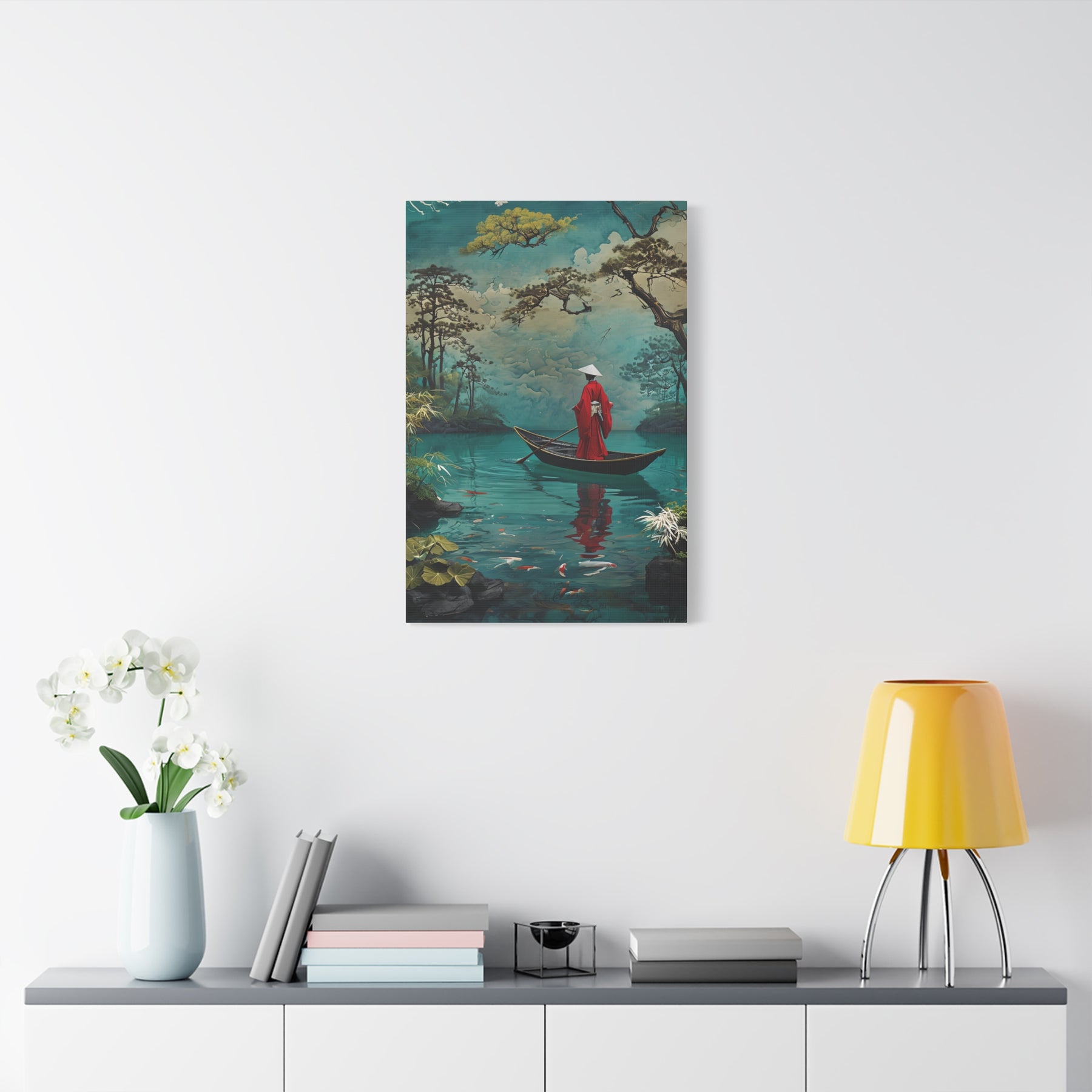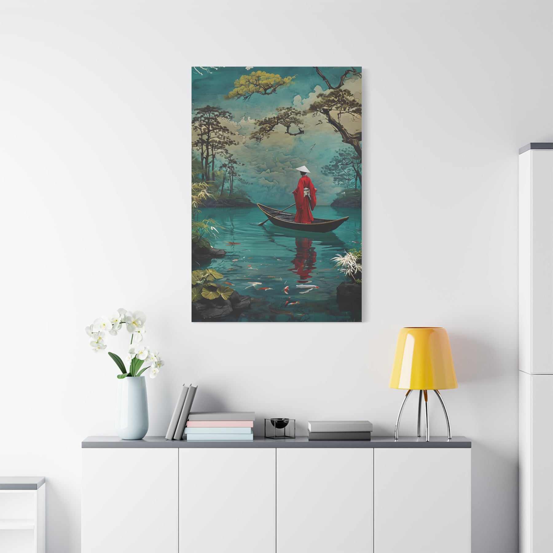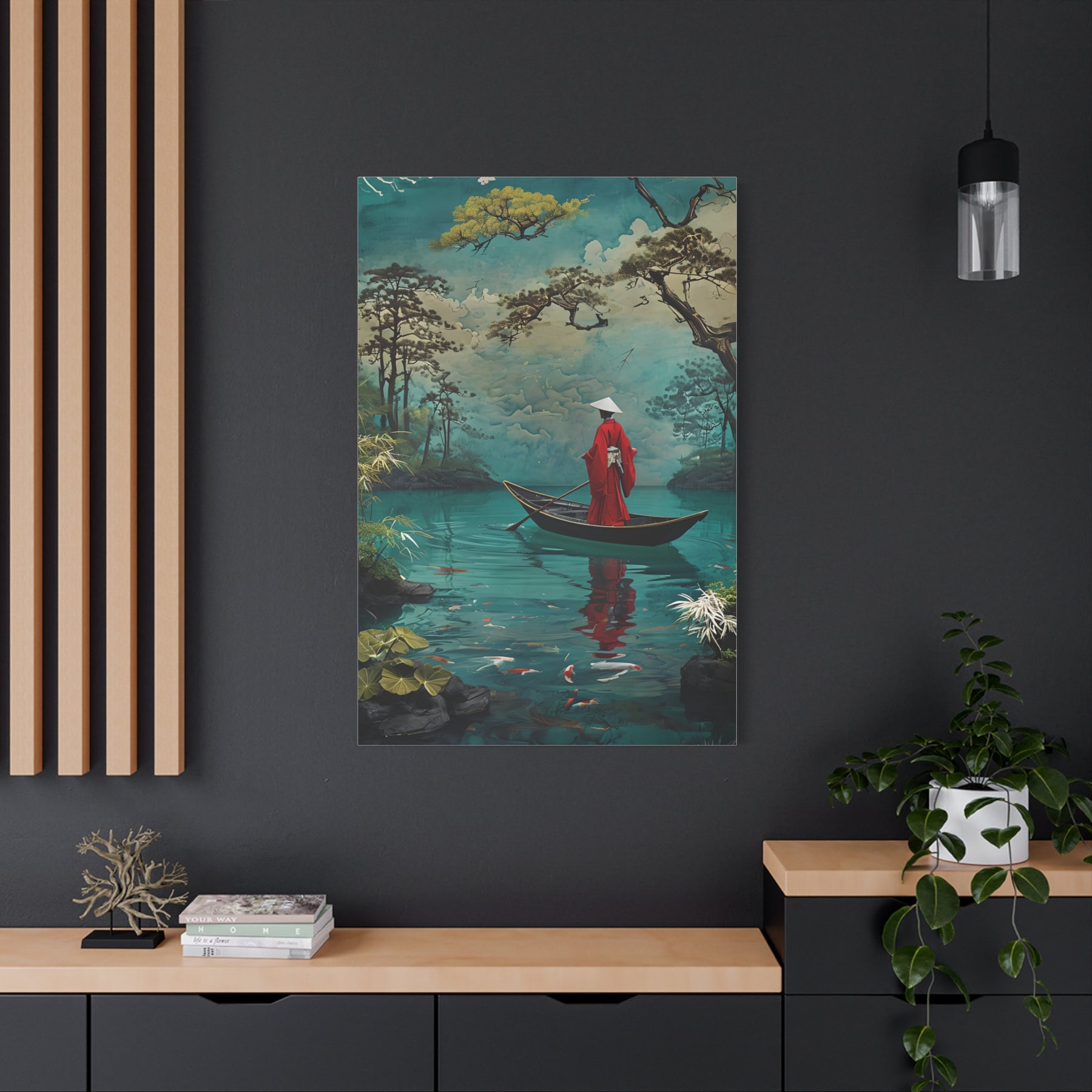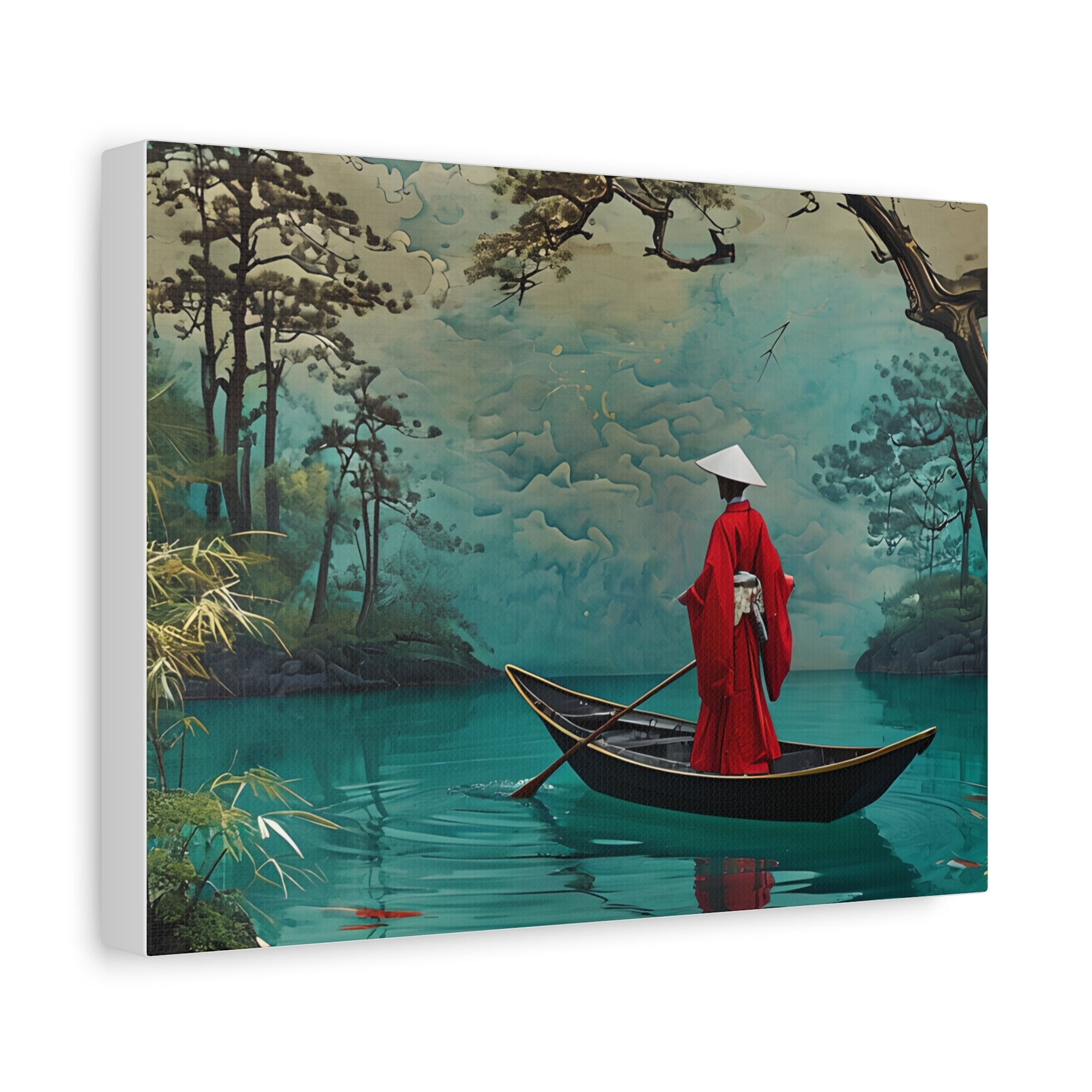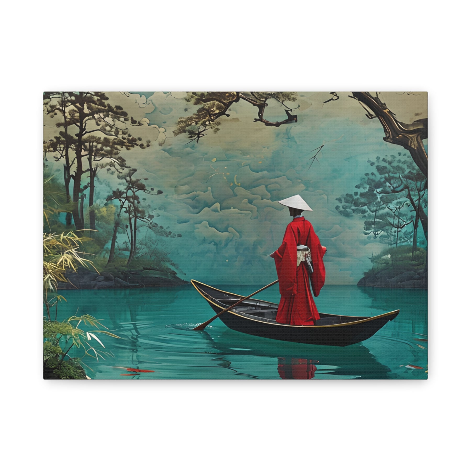 Bring peaceful storytelling and elegant minimalism to your space with this serene Japandi wall art print. Featuring a lone man in a red kimono rowing toward shore, this composition beautifully blends Japanese tradition with Scandinavian calm — a signature of the Japandi art style. Perfect for living rooms, bedrooms, offices, or meditation spaces, this artwork is available as both a digital download and a ready-to-hang canvas print. The soft palette, clean lines, and symbolic journey evoke stillness and intention — ideal for creating a harmonious, minimalist atmosphere. Whether you're curating a Japandi-style interior, gifting a thoughtful piece of art, or refreshing your gallery wall, this print adds quiet beauty and refined emotion to any setting. Product features - Rubber dots on bottom keep canvas in place - Unique canvas coating for highest quality images - Sustainable product made from FSC certified wood - Printed with non-toxic latex inks Care instructions - If the canvas does gather any dust, you may wipe it off gently with a clean, damp cloth..