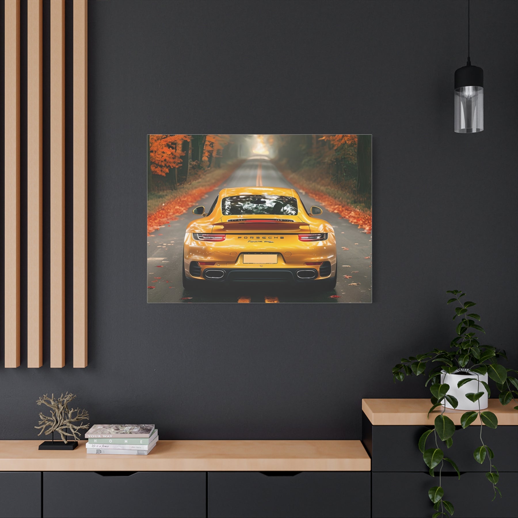 Bring the thrill of the open road and the warmth of autumn into your space with this vibrant canvas print of a yellow Porsche cruising through a golden fall landscape. Admire the print as the crisp leaves swirl in the air showcasing the sleek lines of this beautiful sports car as it cuts through a backdrop of fiery foliage capturing the moment of exhilaration and the vibrant colors of autumn, showcasing the freedom of the open road in one stunning moment. Perfect for car enthusiasts, modern interiors, or anyone who loves the blend of speed and seasonal beauty. This high-resolution canvas print is ideal to frame for your office, garage, man cave or living space — or why not gift it to the Porsche lover in your life. You can also hire us to create a personalized canvas print for you for an additional fee, contact us directly @uchsales4u@gmail.com and we will get right to work for you! Product features - 2 rubber dots for stability when hung - Coating ensures high-quality image reproduction - Made from sustainable, FSC-certified wood - Non-toxic latex inks for safe use - Available in 5 sizes Care instructions - If the canvas does gather any dust, you may wipe it off gently with a clean, damp cloth.